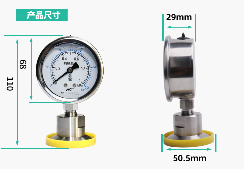 YNTP-60BF不銹鋼衛生型隔膜壓力表